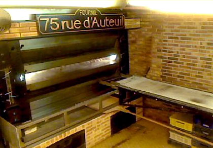Voir la webcamWebcam dirigée sur le fournil d'un artisan boulanger parisien - la boulangerie Bonneau - qui invite ses internautes à suivre la cuisson de ses baguettes et autres spécialités du jour dans la plus pure tradition française, tous les jours de 5h30 à 18h30 (sauf les lundis et mardis). Actualisation de l'image toutes les 10 secondes.