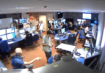 Voir la webcamÉvidemment, ça s'adresse aux passionnés du genre. Les installations UX15 de la salle Atlas du CERN, Organisation européenne pour la recherche nucléaire, à la frontière franco-suisse, peuvent être visionnées sur 5 webcams différentes. Atlas est un méga-aimant supraconducteur, le plus imposant du genre jamais construit. Le courant de plus de 21 000 ampères traverse huit bobines géantes. Ces énormes installations ne diront pas grand-chose aux néophytes qui préféreront s'amuser à observer les très sérieux employés de l'Atlas Control Room (cette image est rafraîchie toutes les 5 minutes, deux vues différentes de la salle de contrôle).