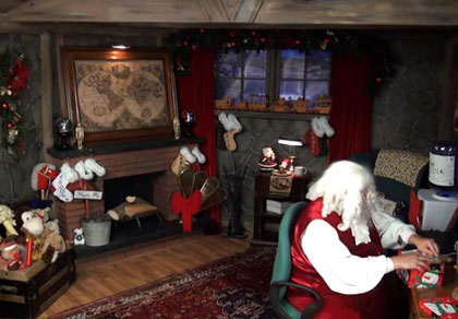 Voir la webcamLa vraie maison du Père Noël au Pôle Nord, promis ! Filmée 24 heures sur 24 en haute résolution. Devine-t-on les lutins, les cadeaux commandés, les rênes et tout et tout ? A vous de vérifier.