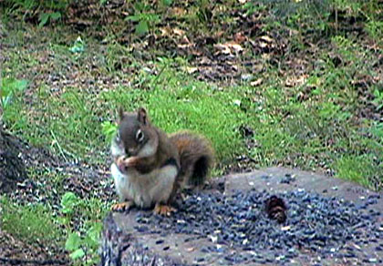 The Squirrel Cam ou « Caméra des écureuils » s'intéresse à une espèce endémique que l'on ne trouve qu'aux États-Unis et au Canada, l'écureuil roux américain. Une petite bête ne dépassant pas 35 centimètres et 250 grammes qui adore les plateformes abondant en nourriture, petites graines, écuelles d'eau, que l'on peut observer en live, avec le son s'il vous plaît, grâce à cette webcam vraiment très sympa, entretenue par Bob, véritable résident du Pôle Nord (mais non, ce n'est pas le Père Noël précise-t-il sur son blog, pas la peine de lui envoyer votre liste !).